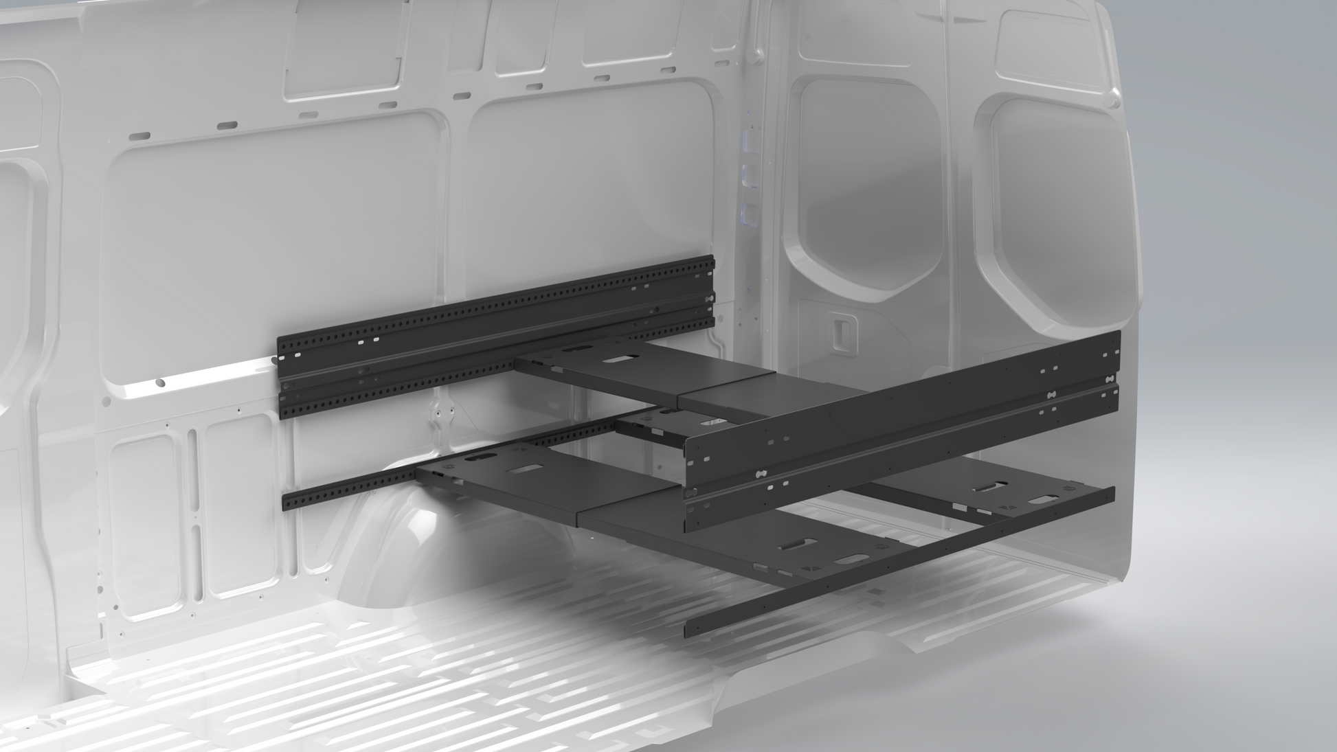 While there are countless configurations, we typically recommend 4 panels and 3 sets of J channel to create 3 mounting heights. This allows for the most configurations, including platform bed, bunks, table, couch, and desk configurations. Even in shorter vans, such as a Sprinter 144, the 4th panel will be used for bunks and as a storage shelf.