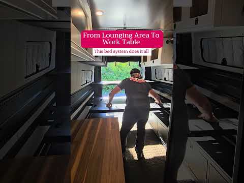 The Van Wife Components Multifunction Bed System is a versatile furniture system for your van that can create numerous configurations, including a platform bed, two bunks, couch, desk, or table. The entire system can be hung on the wall vertically (2 per side) to open the entire back of the van.