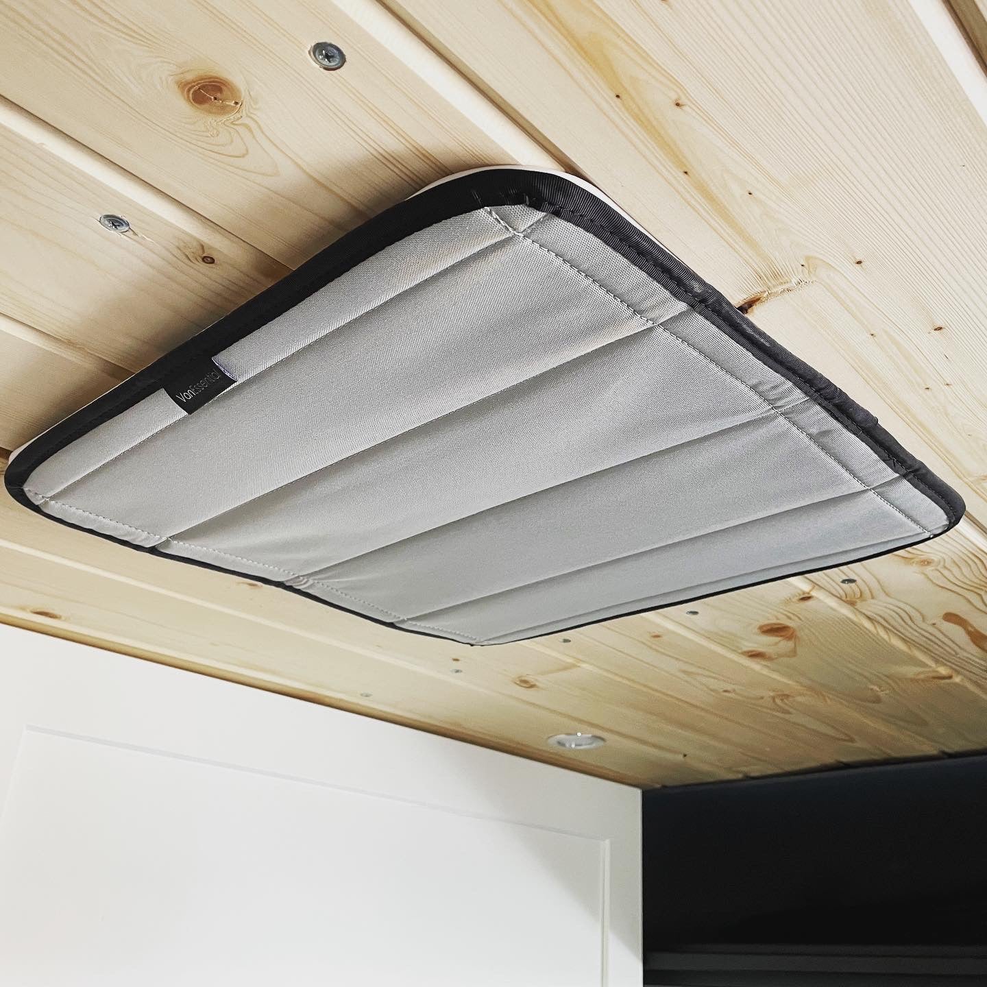 VanEssential roof vent cover are designed to fit the MaxxAir Fan or Fantastic Fan with 16.5″ x 16.5″ flange. Our cover helps to block unwanted light coming in from your roof fan to help you sleep better and regulate your vans temperature as the fan is only a thin piece of plastic protecting you from the elements.