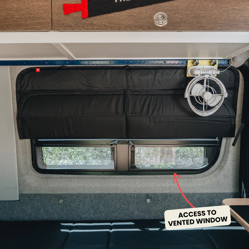 Insulated Blackout Window Cover designed for the crew window right behind the driver’s seat. This cover adds privacy and keeps the temperature just right. When you don’t need it, simply fold it up and store it right in place at the top of the window.